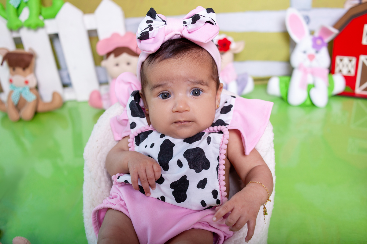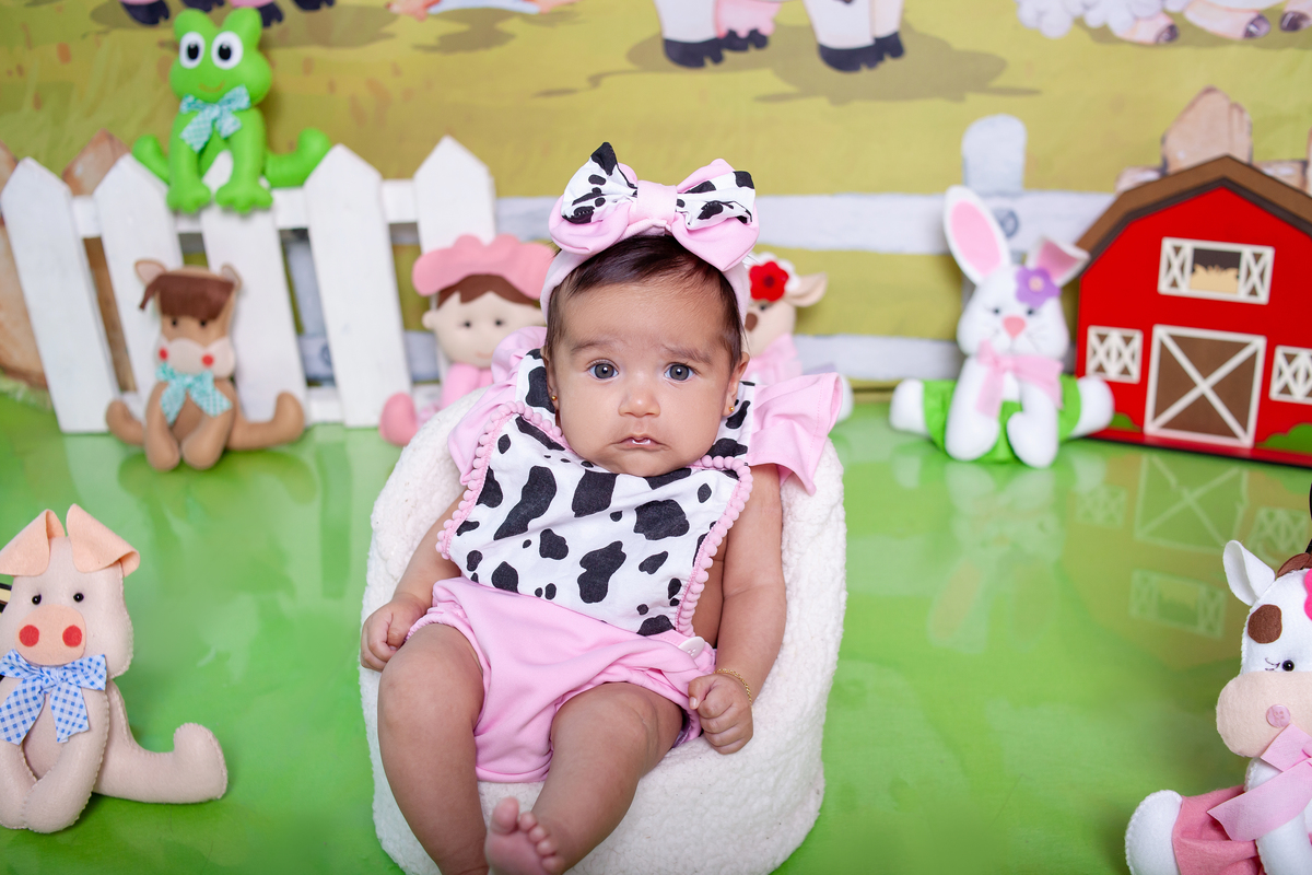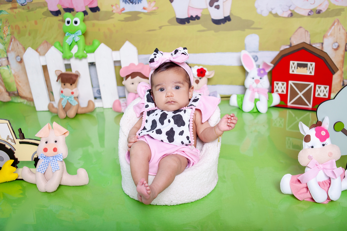3 meses no tema fazendinha para Isabella.
