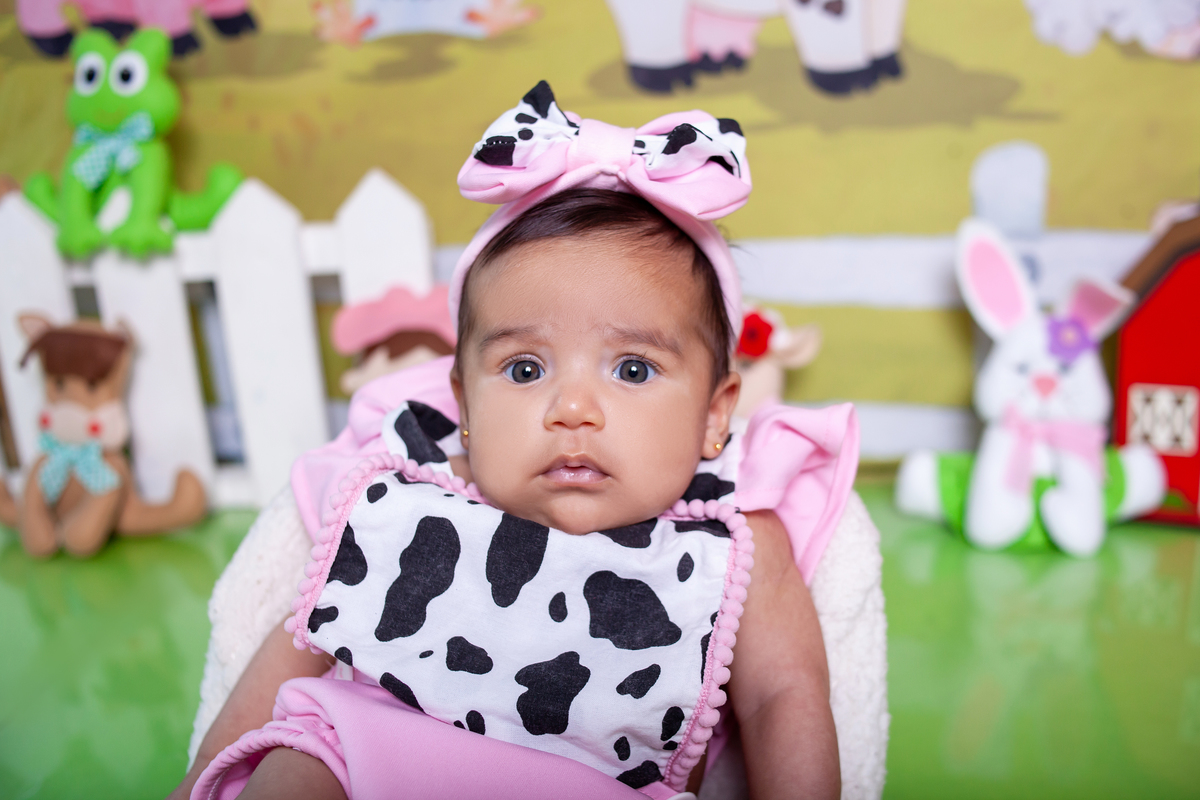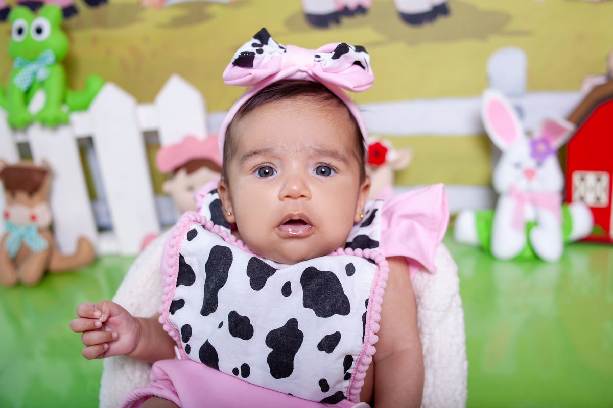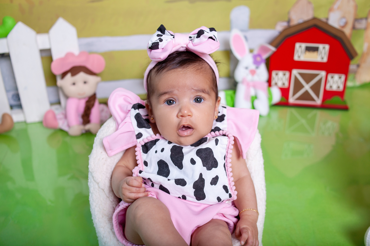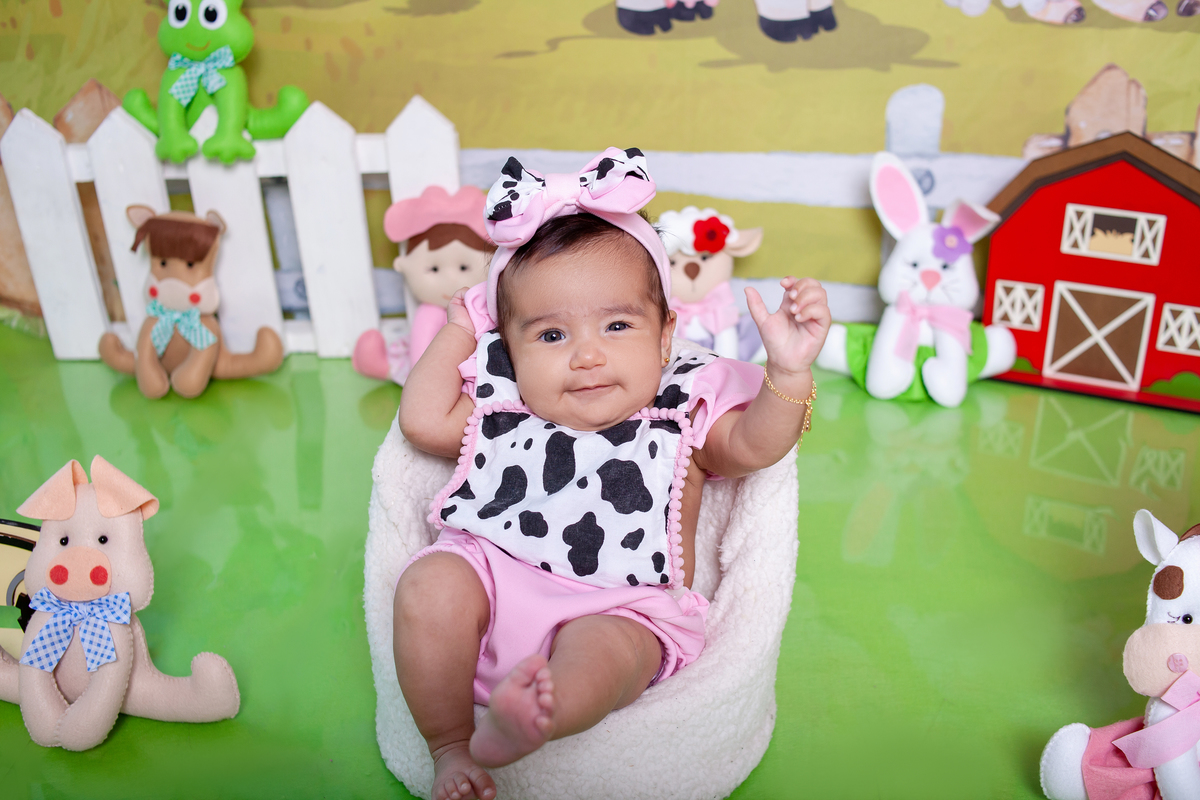 3 meses no tema fazendinha para Isabella.