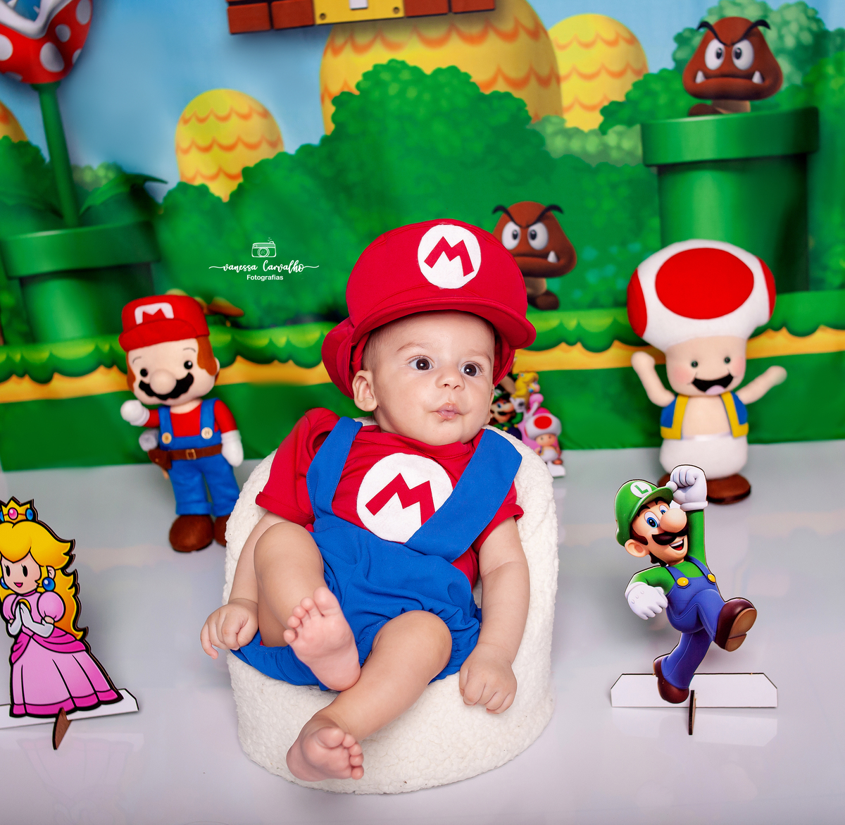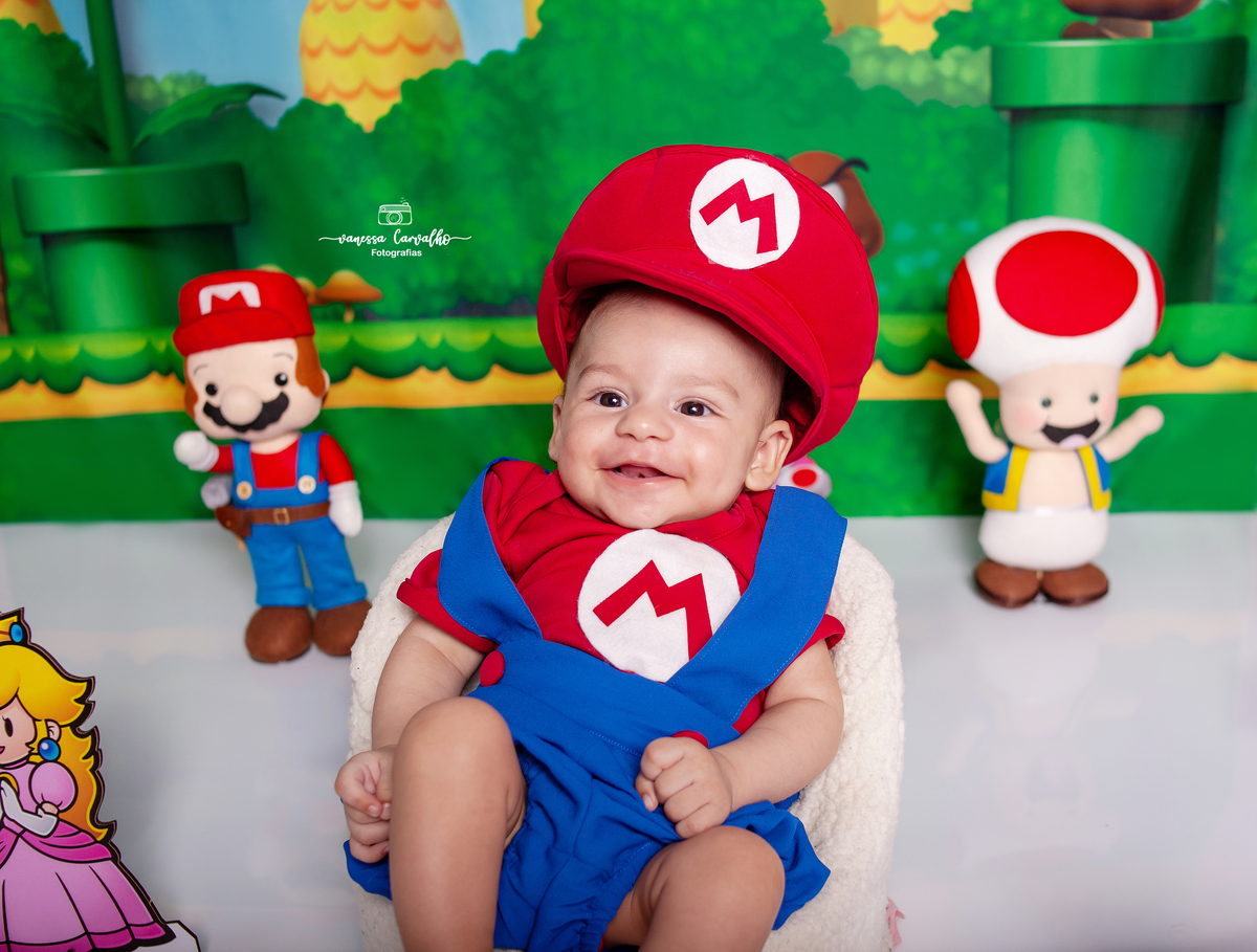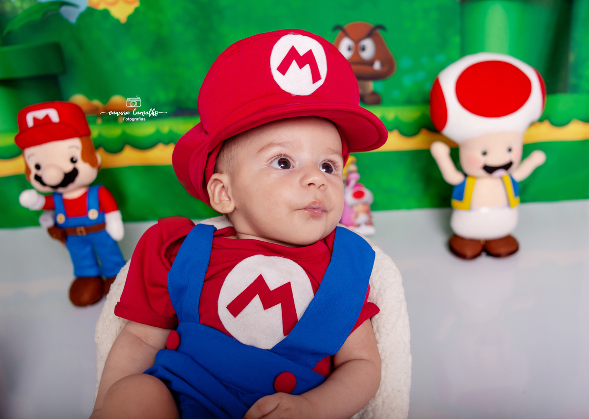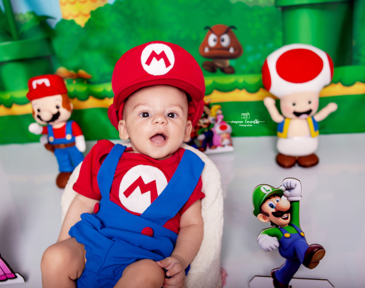 Super Mario para Wendell que completou 4 meses de sorrisos e fofura