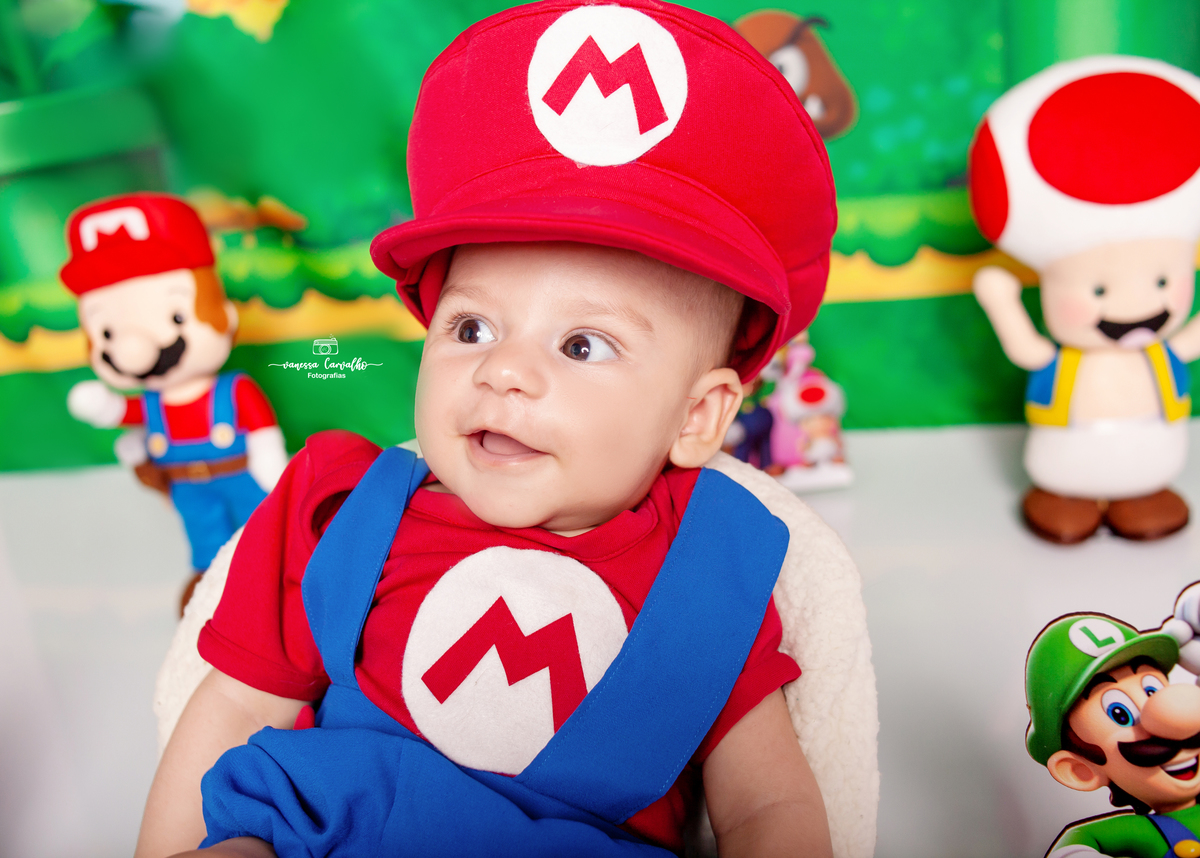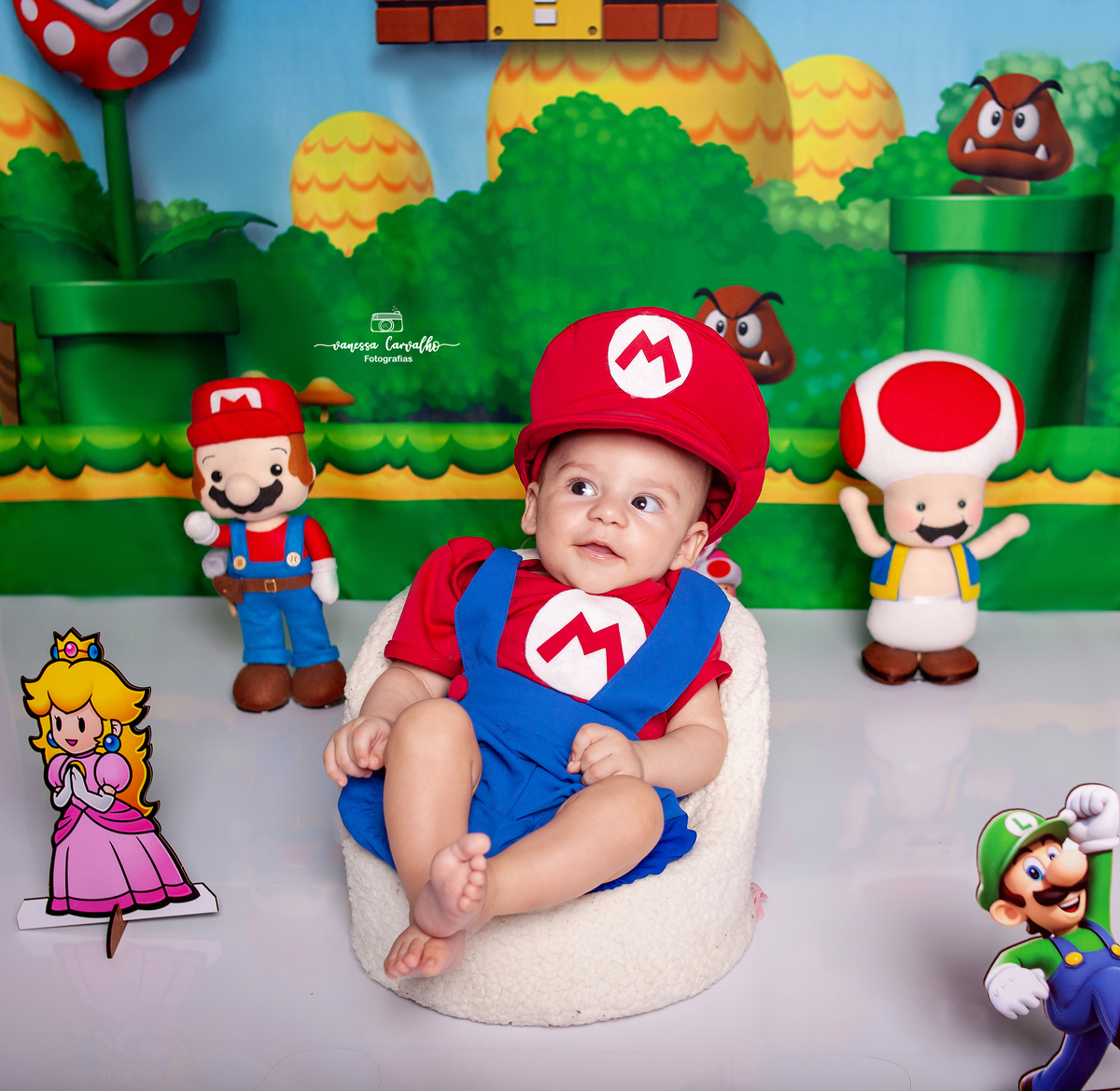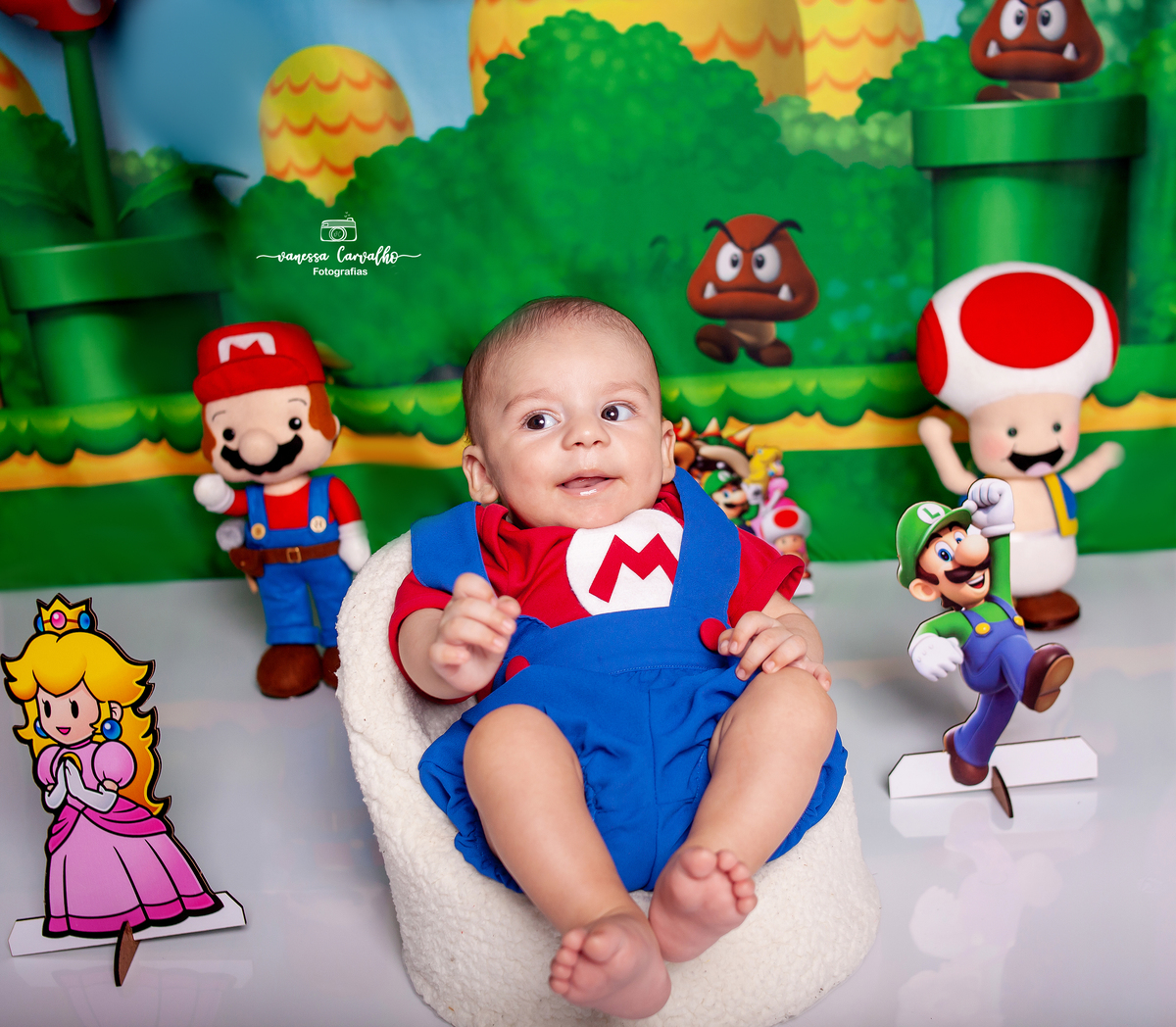 Super Mario para Wendell que completou 4 meses de sorrisos e fofura