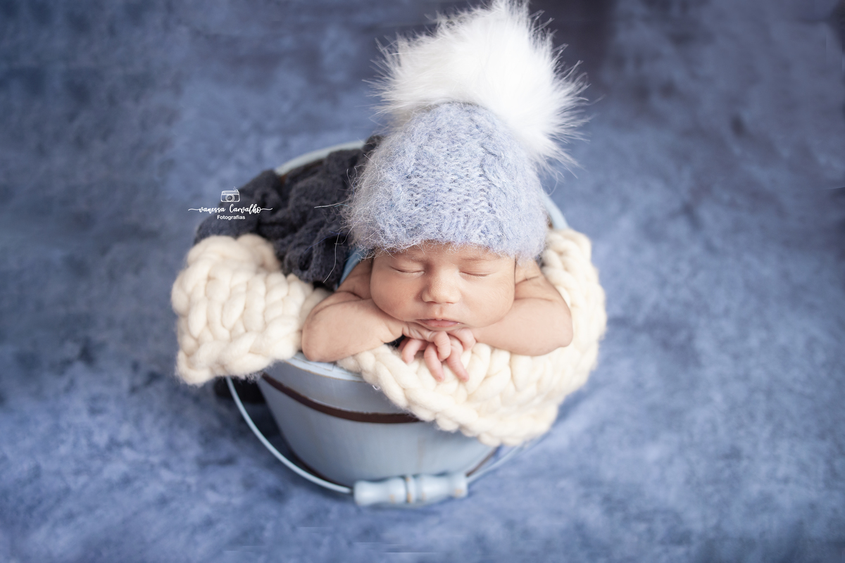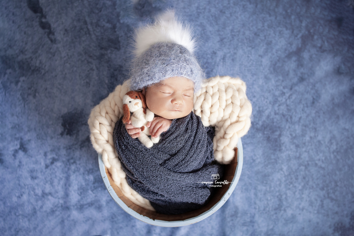 Valentim com 2 dias de vida em um ensaio cheio de amor e carinho.