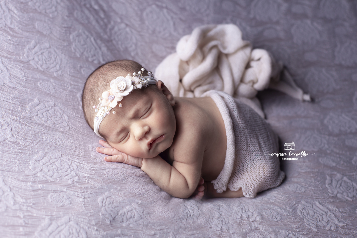 Delicadeza marcou o ensaio newborn da Angelina com 8 dias de vida