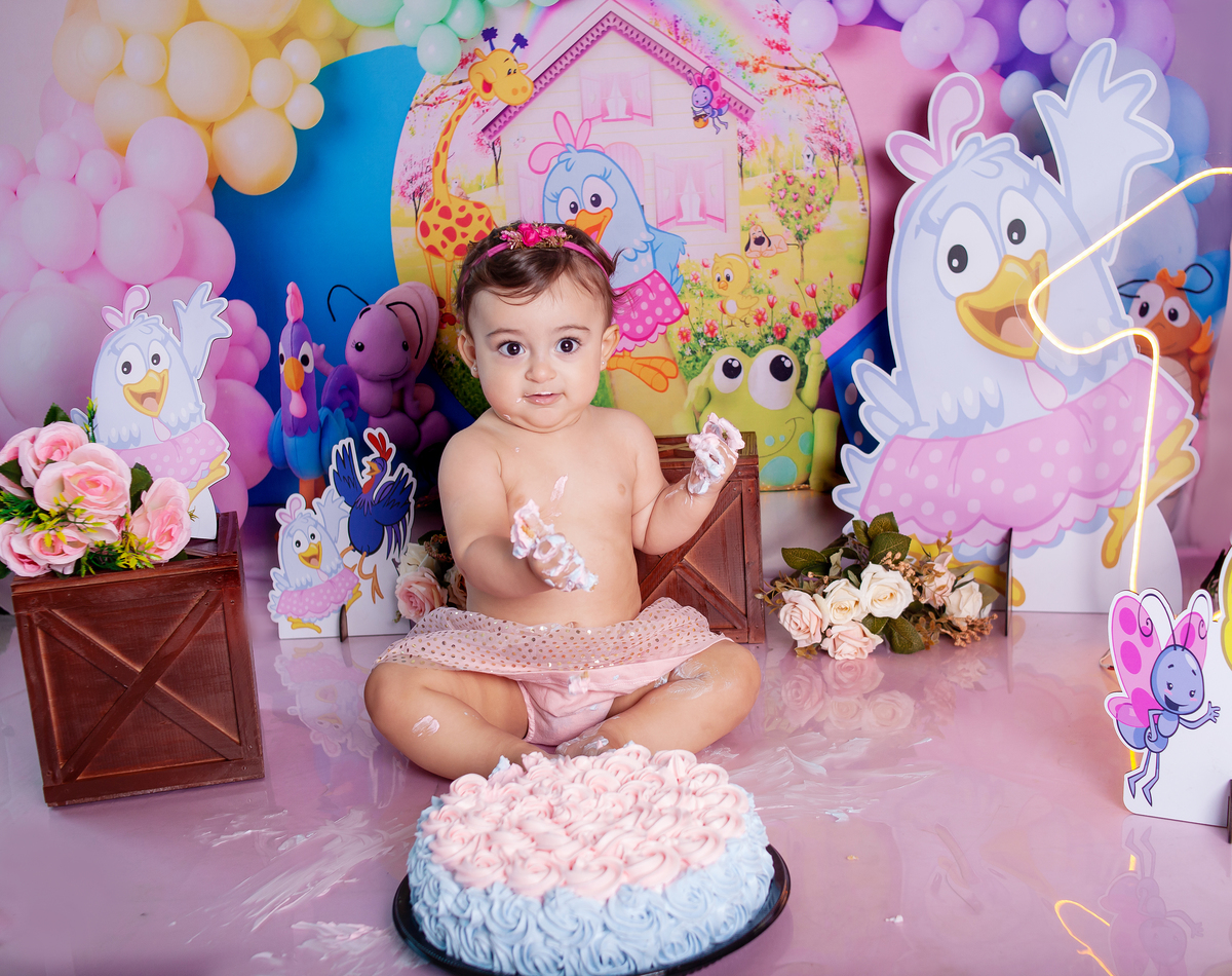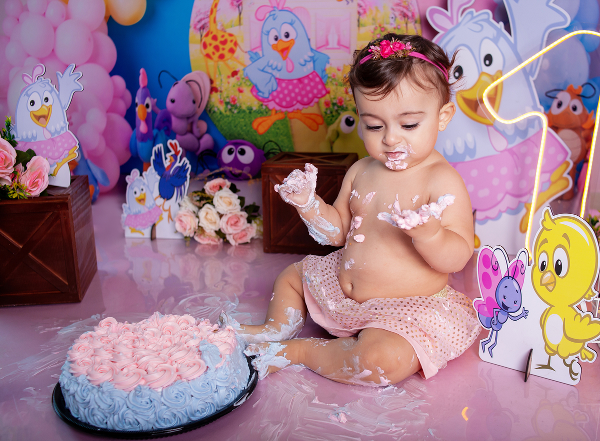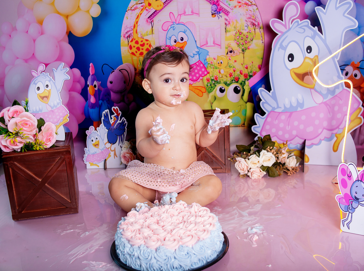 Smash the cake tema galinha pintadinha para comemorar a chegada do primeiro aninho da Maria Luiza